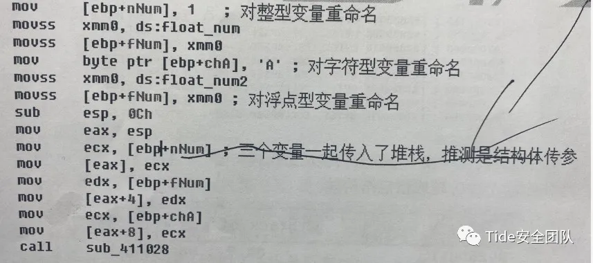 IDA中显示如下,在CALL上面分析传参方式,三个变量以缓冲区方式传参,推测是结构体传参