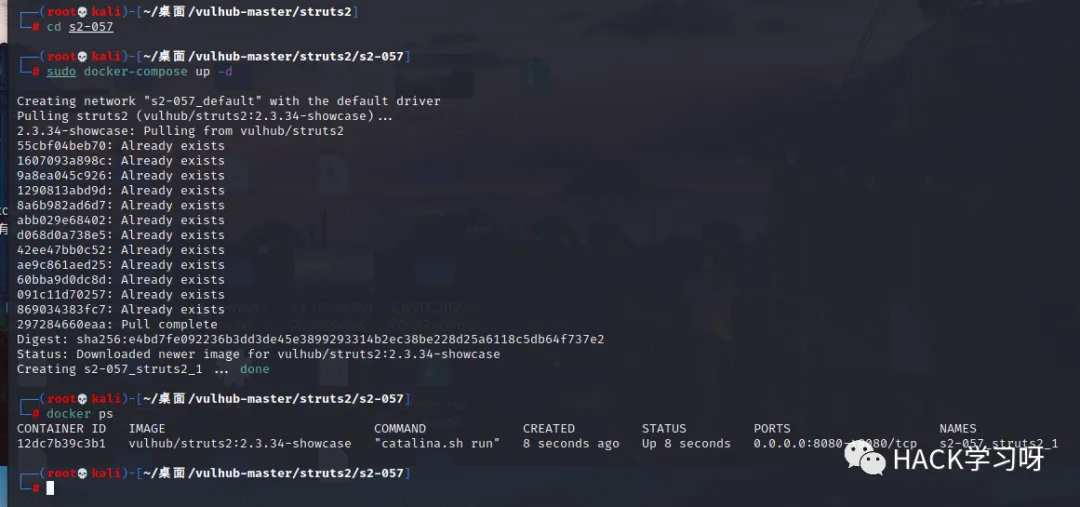进入docker容器查看,在tmp目录下已经创建了success文件