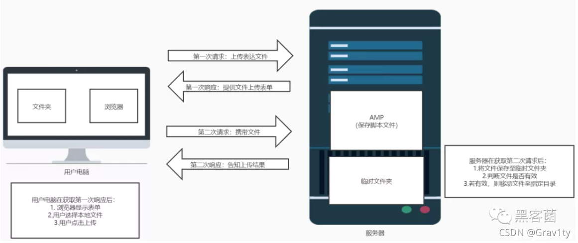 • 不规范的上传流程:若服务器在获取第二次请求后,是先移动文件至指定目录,再判断文件是否有效,若无效,则删除,则可以使用
