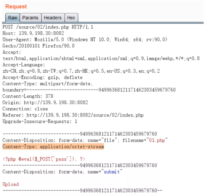 服务端MIME类型检测:在服务端中,使用_FILES访问文件信息,检测POST报文content-type字段的内容(存储在F​ILES访问文件信息,检测POST报文content−type字段的内容(存储在_FILES[按钮的name属性值][type]中)
