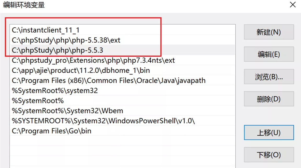 增加这三个路径,注意顺序不要变,instantclient必须放在php的上面。