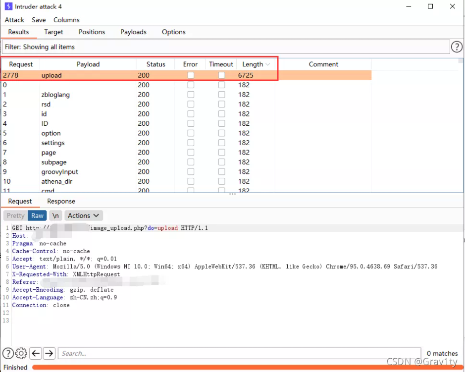 随后在burpsuite中对do的参数值进行fuzz 成功fuzz出一个do的参数值,upload