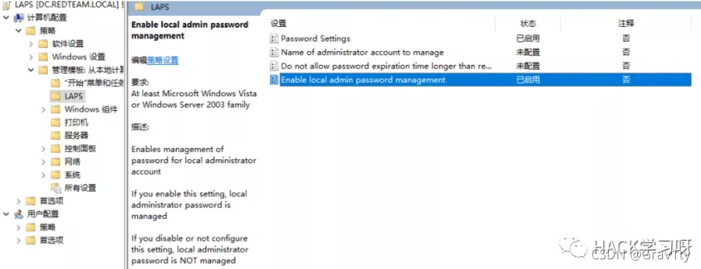 也可以检查CN=ms-Mcs-AdmPwd,CN=Schema,CN=Configuration,DC=redteam,DC=local是否存在CN=ms-Mcs-AdmPwd