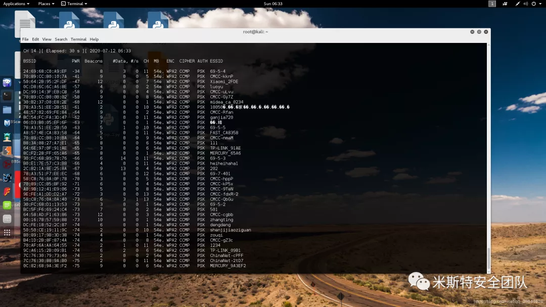 5. airodump-ng --ivs -w ice -c 6 wlan0mon 抓包