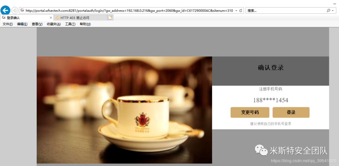 接入点是h3c的ap,连上之后需要手机短信认证。
