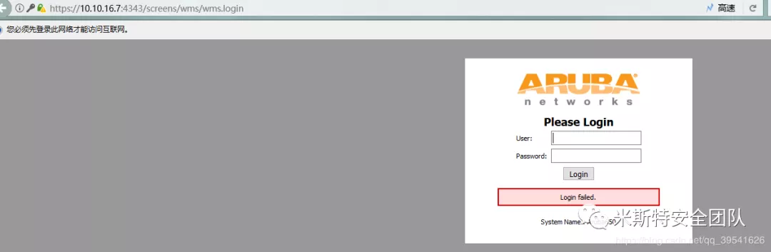 探测到无线控制器WEB管理地址:https://10.10.16.7:4343/screens/wms/wms.login