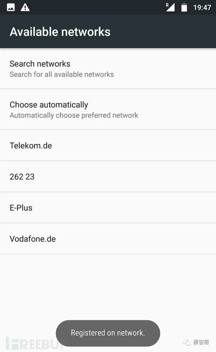 3.搜索我们的基站并手动连接到它:设置>蜂窝网络>搜索网络。通常它显示为包括MCC和MNC值的数字