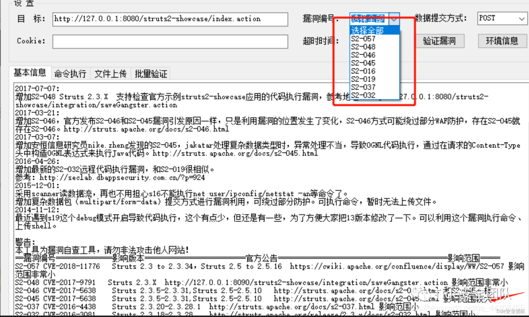 在主流的struts2漏洞利用工具上,主要的RCE漏洞如上图所示,一看这么多的编号,都排到57了,就像道哥说的一样如果一个软件出现的漏洞较多,那么说明代码维护者的安全意识与安全经验有所欠缺,同时由于破窗效应,这个软件未来往往出现更多的漏洞。