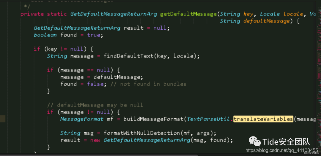 再跟进getDefaultMessage函数,在该函数里调用了TextParseUtil.translateVariables
