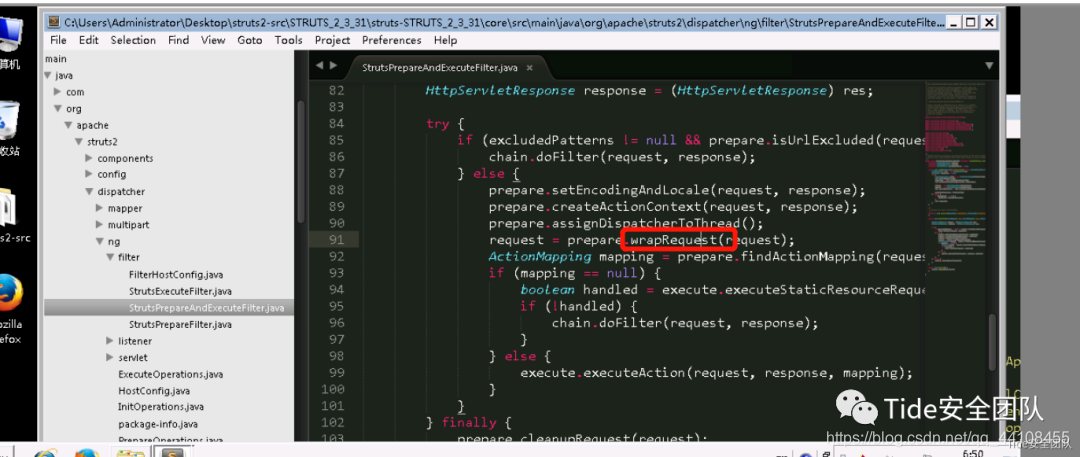 我们选择从框架入口开始跟踪输入流,Struts2的默认入口是StrutsPrepareAndExecuteFilter,可以在web.xml里查看
