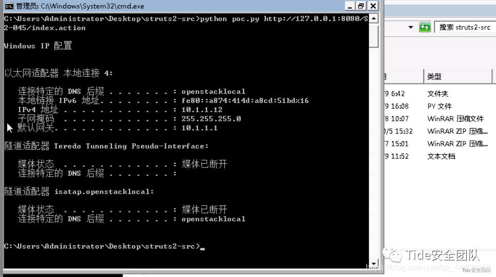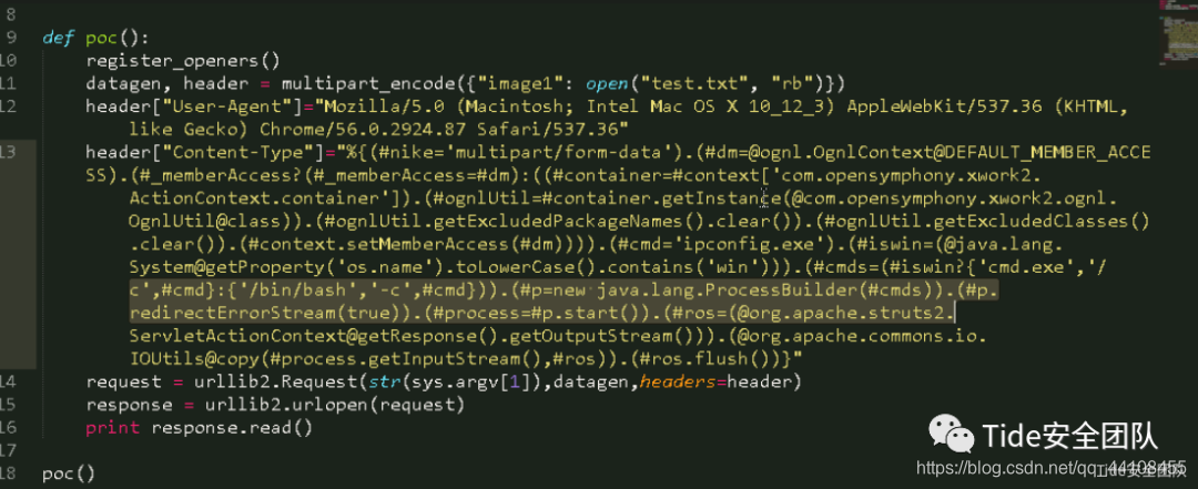 #nike='multipart/form-data'   就是使content_type.contains("multipart/form-data")判断为true。如果该POC运行成功会执行ipconfig命令。同时要求在POC同目录下,必须存在test.txt,这个文件名和路径可以自行修改,只要保证存在即可。