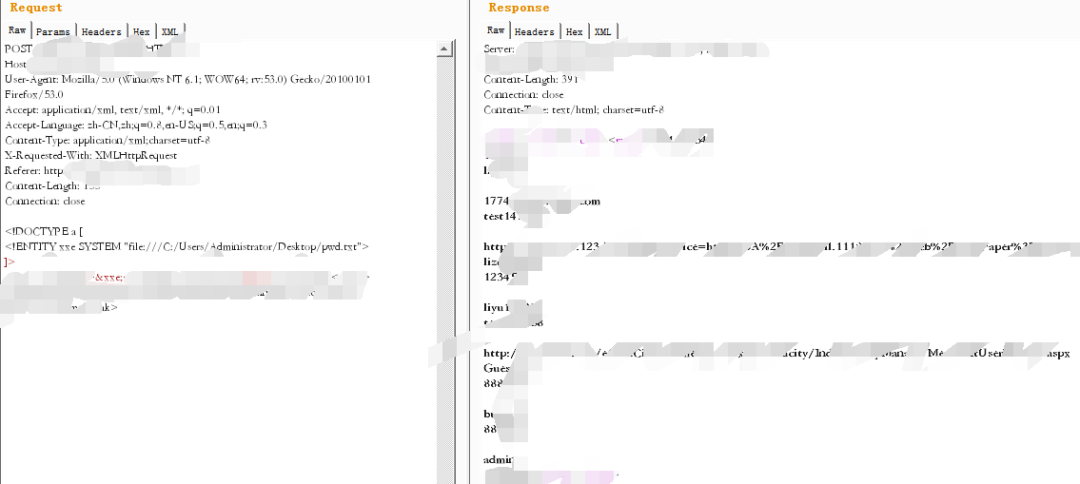 在整理报告的时候,我发现大强的漏洞报告里有一个XXE漏洞,并且还是回显的。仔细的研究后发现,这个接口是整个系统登录后的的统一参数入口。系统解析到xml里的方法后,再根据对应的方法执行响应的逻辑。按耐不住内心的躁动,我和大强开始了通过fuzz找各种敏感文件。