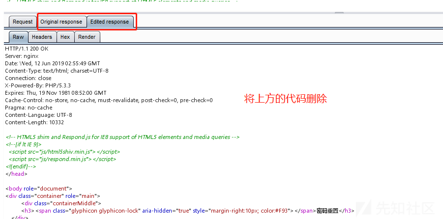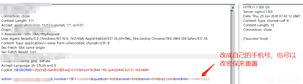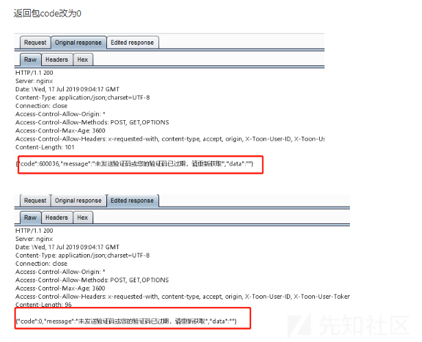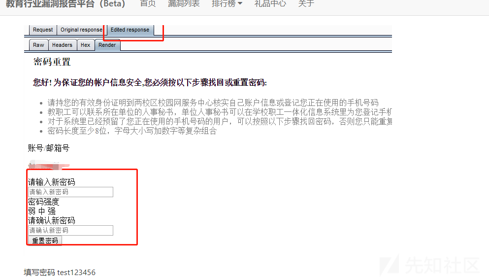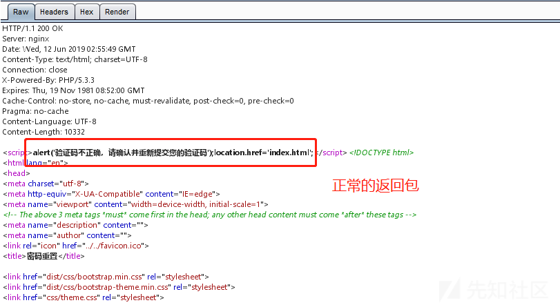 很好理解,短信验证码,重置链接等一系列用于重置密码过程认证的值在burp返回包响应泄露。