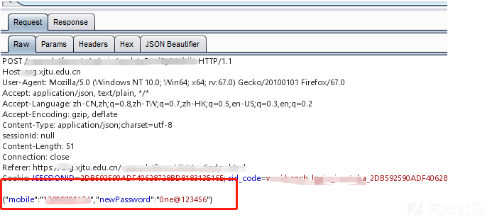 通过在js中找到的未授权的方法,可写入任意用户的资料(改预留手机号)来实现任意用户密码重置。
