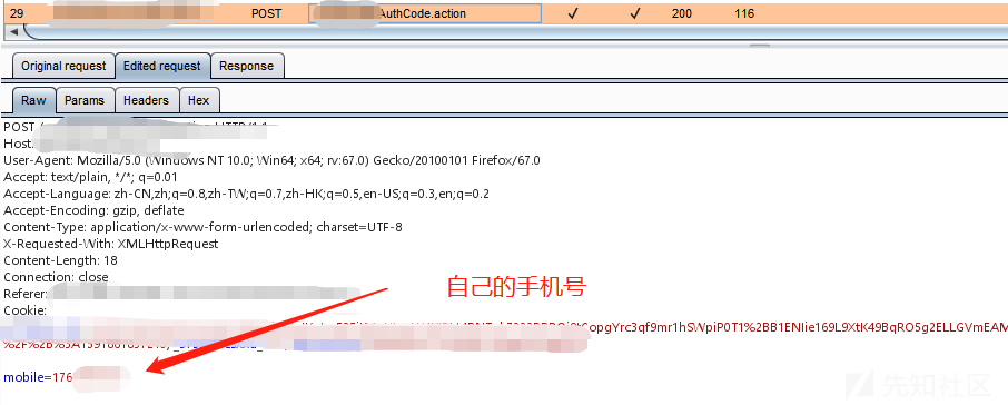 输入admin账号后,服务端返回手机号给前端,获取验证码时,服务端又从前端获取手机号码