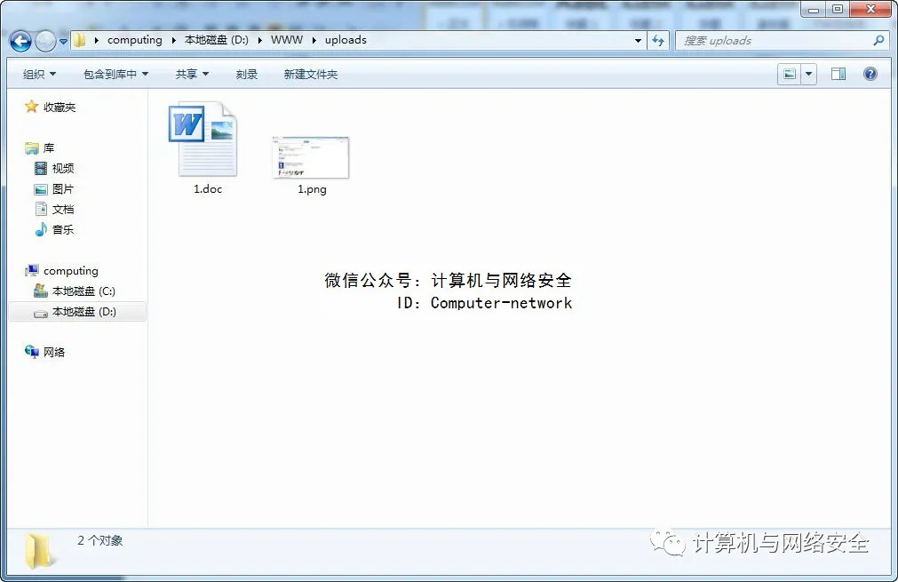 此时,可以看到uploads文件夹下面只有这些文件:1.png及1.doc。其实,1.doc就是1.png修改后缀名后的文件,本质上它是png文件,如图19所示。