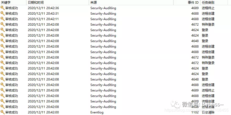 Windows日志分析: 在本地安全策略中,需开启审核进程跟踪,可以跟踪进程创建/终止。关键进程跟踪事件和说明,如: