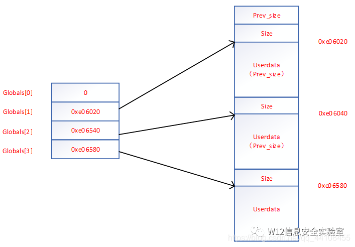 由于程序本身没有进行 setbuf 操作,所以在执行输入输出操作的时候会申请缓冲区。所以Globals[1] 触发器到malloc缓冲区的io函数