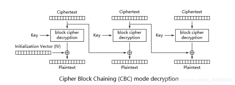 - Plaintext-N = Decrypt(Ciphertext) XOR Ciphertext-(N-1)—用于第二及剩下的组块 # N > 1