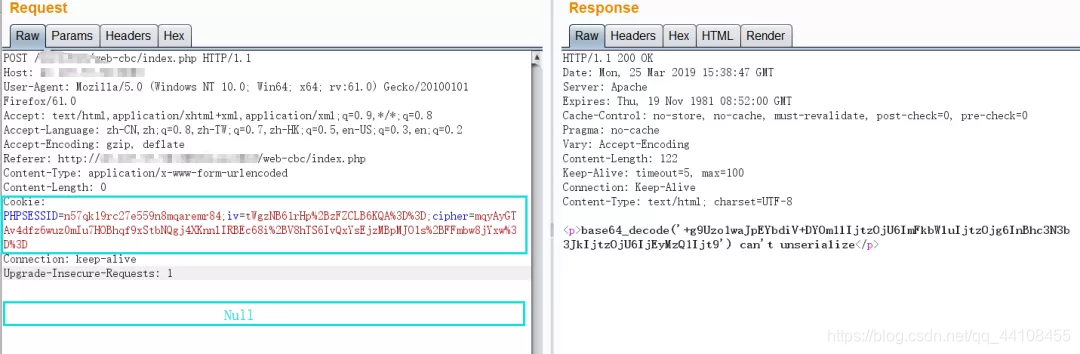 - $cipher = base64_decode(urldecode('mqyAyGTAv4dfyqwuz0mIu7HOBhqf9xStbNQgj4XKnnlIRBEc68i%2BV8hTS6IvQxYsEjzMBpMJO1s%2BFFmbw8jYxw%3D%3D')); //这里放burp放回的base64的cipher数据