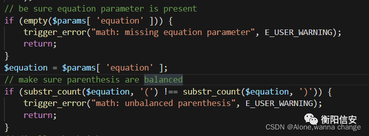 对恶意拼接的数学字符串进行过滤(漏洞利用POC格式其实也在这里写出来了,参考$regexp) 而在较低版本下,缺少过滤部分,进而导致RCE