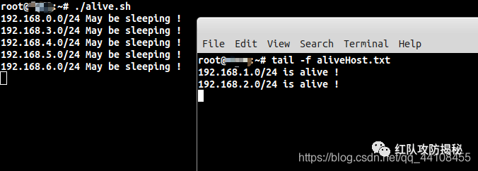 - echo 10.$i.$j.0/24 is alive ! >> aliveHost.txt